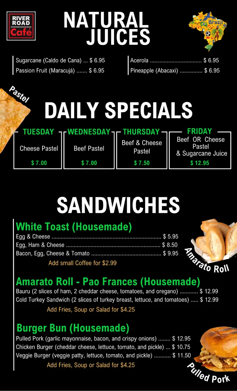 At River Road Cafe, discover a delightful array of authentic Brazilian snacks and sweets. Invite your loved ones to join you, or savor the experience in your own company as you immerse yourself in the rich flavours of Brazilian culture.